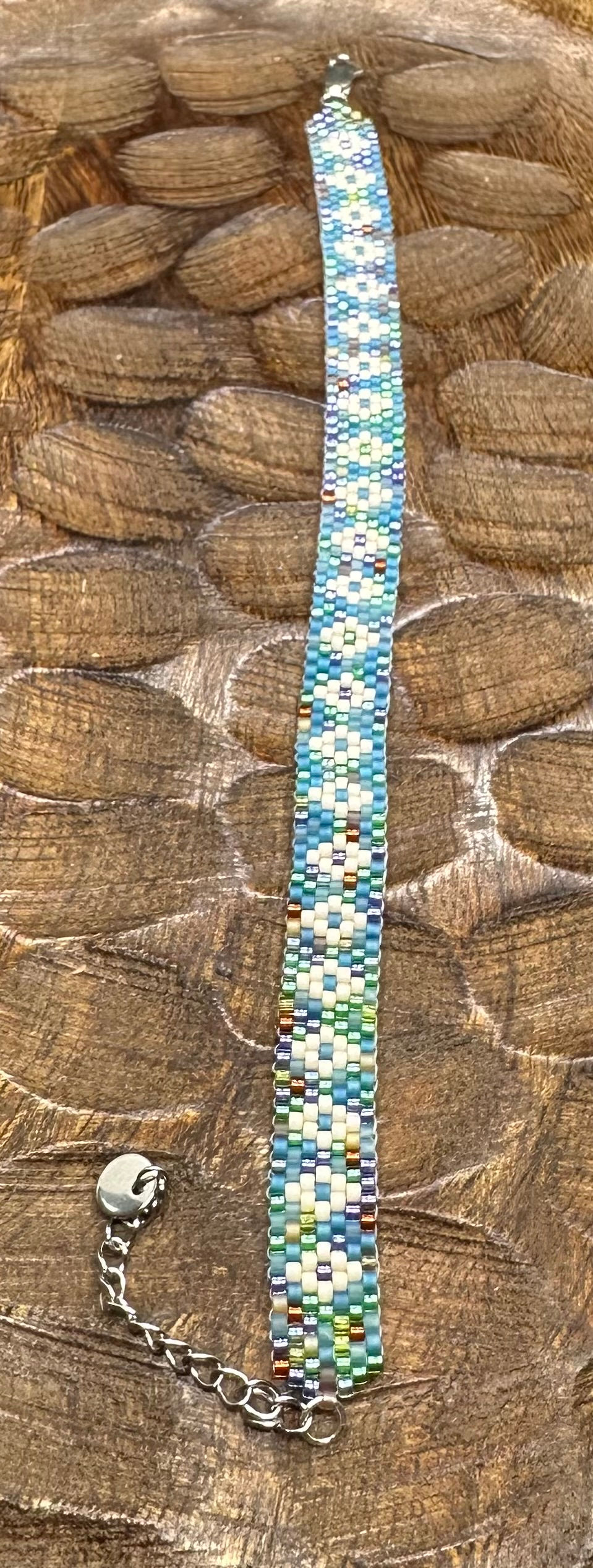 Our handwoven peyote stitch bracelets are available in a variety of sizes — from petite and delicate pieces perfect for everyday wear, to bold cuff-style designs that make a statement. With a wide range of patterns, colours, and styles to choose from, there’s a bracelet to suit every look and occasion.